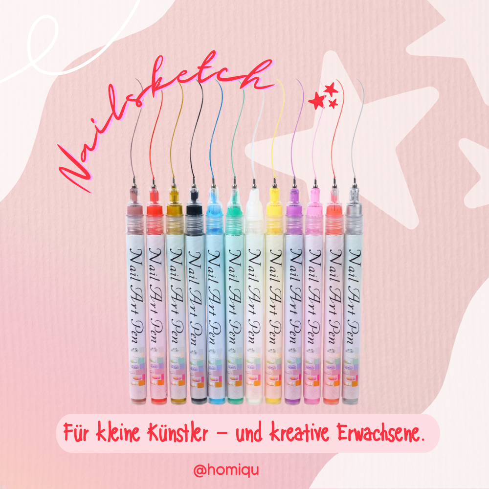 Die ultra-feine Spitze sorgt für klare Linien, kleine Muster und kräftige Farben, die genau da landen, wo sie sollen – auf den Nägeln. Kein Kleckern, kein Tropfen, kein Schmieren. Die Farben trocknen schnell, halten gut und machen jedes Design zum kleinen Highlight. Egal ob Herzen, Smileys oder bunte Mini-Bilder: Mit NailSketch gelingt alles, ohne dass man ständig wischen oder aufpassen muss.