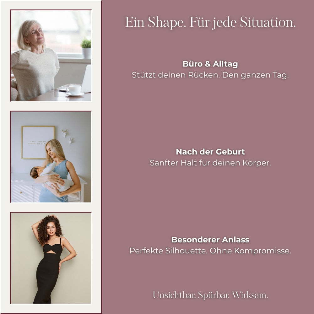 Sie begleitet dich durch lange Tage, wenn dein Rücken müde wird und du dir wünschst, dich leichter, aufrechter, freier zu fühlen. Sie gibt dir Halt in Momenten, in denen dein Körper sich verändert hat und du dir Sicherheit wünschst, ohne auf Komfort zu verzichten. Und sie verleiht dir diese sanfte, elegante Silhouette, die dein Outfit nicht nur schöner macht – sondern dich selbst.