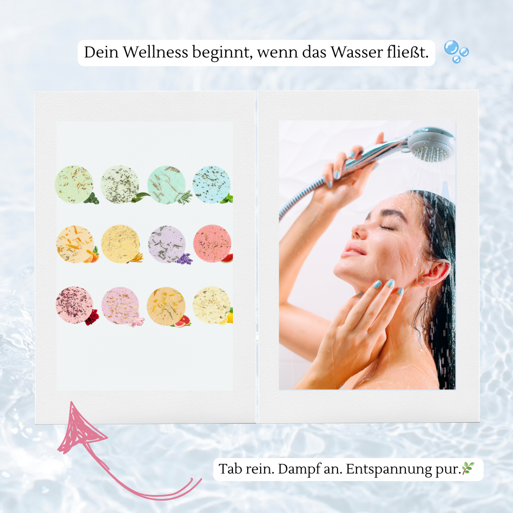 Nur ein Tab pro Dusche – und du spürst, wie Stress, Müdigkeit und Anspannung einfach mit dem Wasser davonschmelzen.