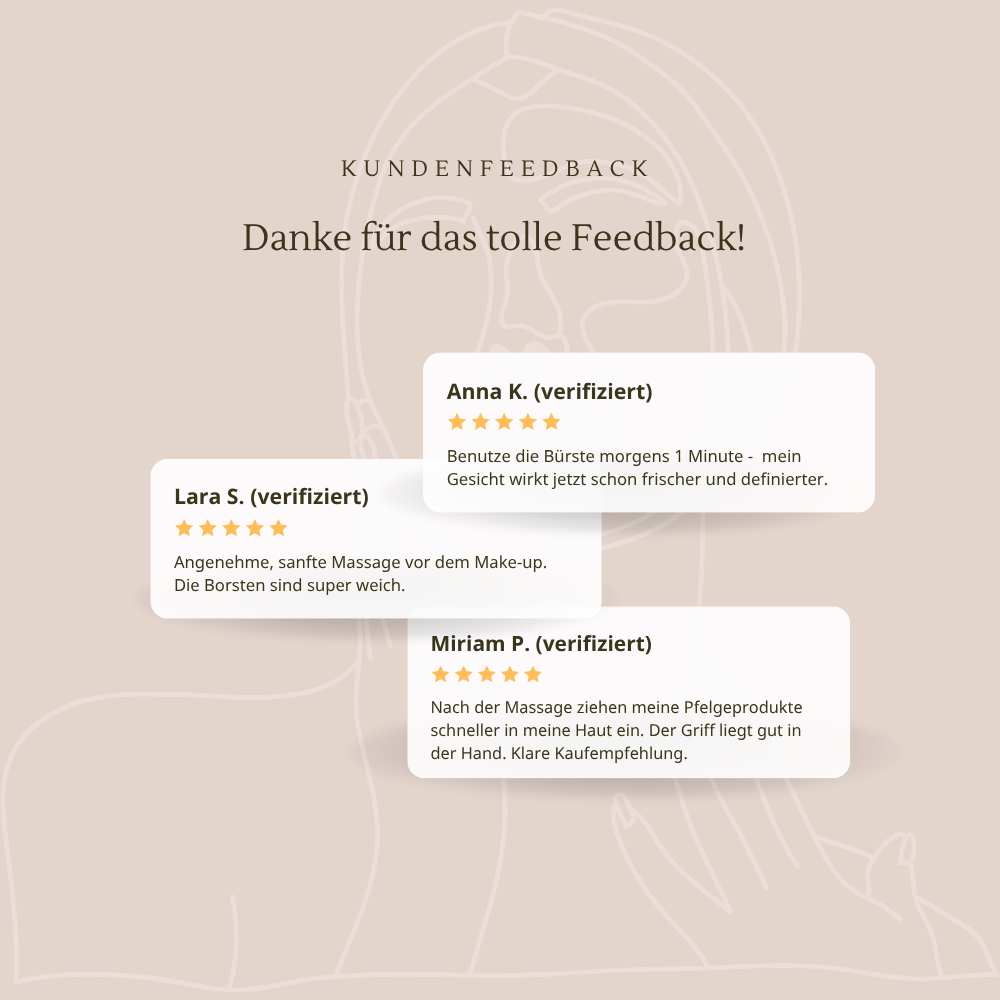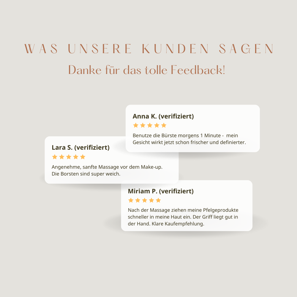 Viele Alternativen sind zu hart (Gua Sha/Roller), brauchen viel Technik/Anleitung oder sind elektrisch, schwer und unhandlich. Das führt zu Reizungen, Druckstellen oder sie verstauben im Bad. LumiBrush setzt auf sanfte Routine, schnelle Ergebnisse und echte Alltagstauglichkeit.